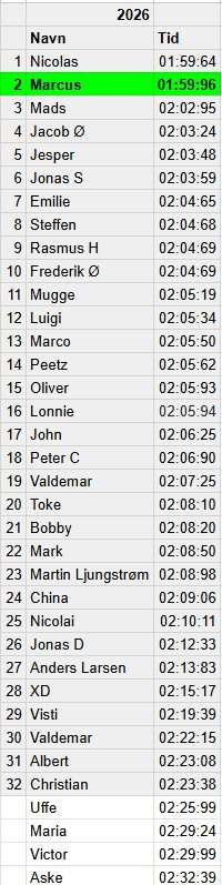 –> Tidligere års kvalifikationstider
